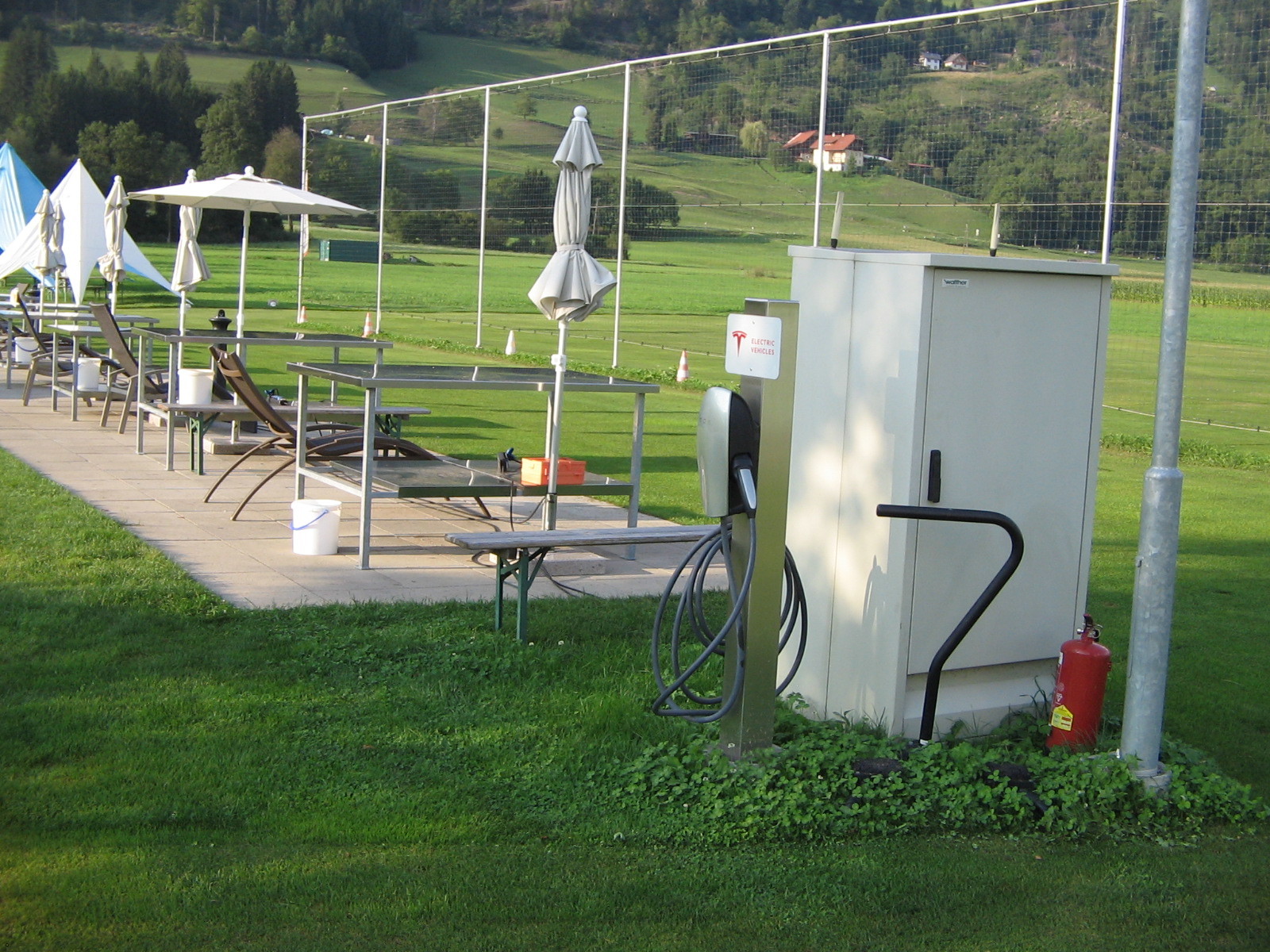 Der Hit aus meiner persönlichen Sicht ist die Tesla Ladesäule am Fluggelände.